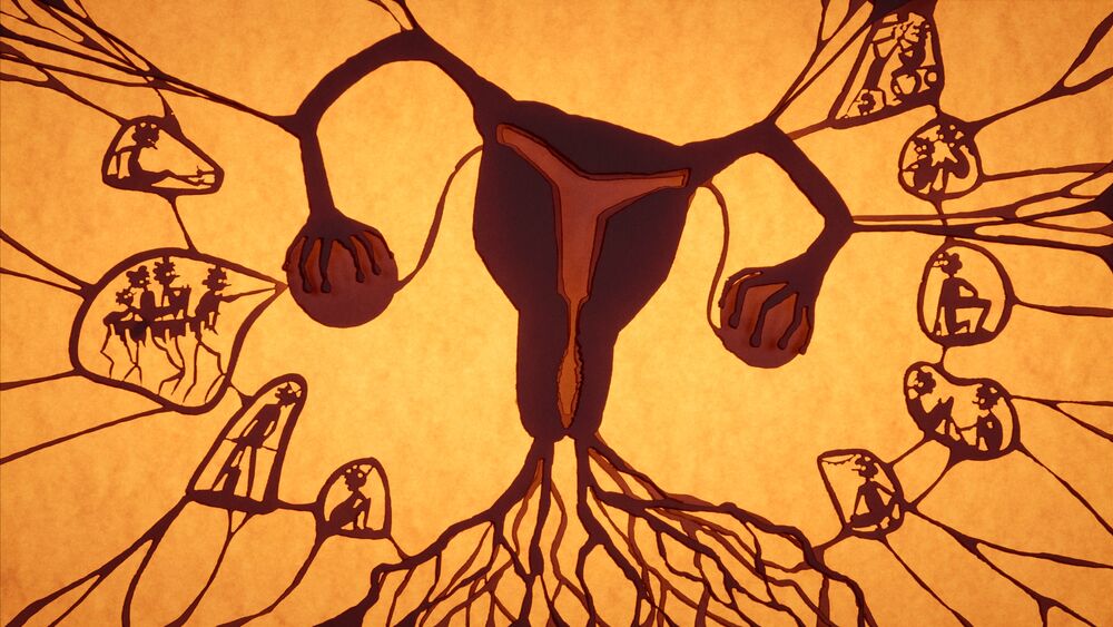 Gaïa ist ein Planet, ein weiblicher Körper, der von Menschen bewohnt wird. Doch der Platz wird knapp, und die Bevölkerung beschließt, eine Eizelle zu befruchten, um neuen Lebensraum zu schaffen – lässt Gaïa das zu? In Gwenola Hecks Animationsfilm verschwimmen die Ausbeutung von Natur und weiblichen Körpern thematisch und visuell und zeigen damit die ökofeministische Haltung der Regisseurin, ohne dass der Film dabei dogmatisch wirkt. Die experimentelle 2D-Lasercut-Animation kreiert eine haptische Welt in warmen Brauntönen, die sich wie aus unzähligen zarten Scherenschnitten zusammensetzt. In kreativen, detailreichen Bildern wird der Körper zu einer ganzen Welt: Seilbahnen rattern auf Zähnen, Windräder drehen sich in der Lunge. Am Ende trifft Gaïa eine Entscheidung für sich – leise und unaufgeregt, aber radikal.